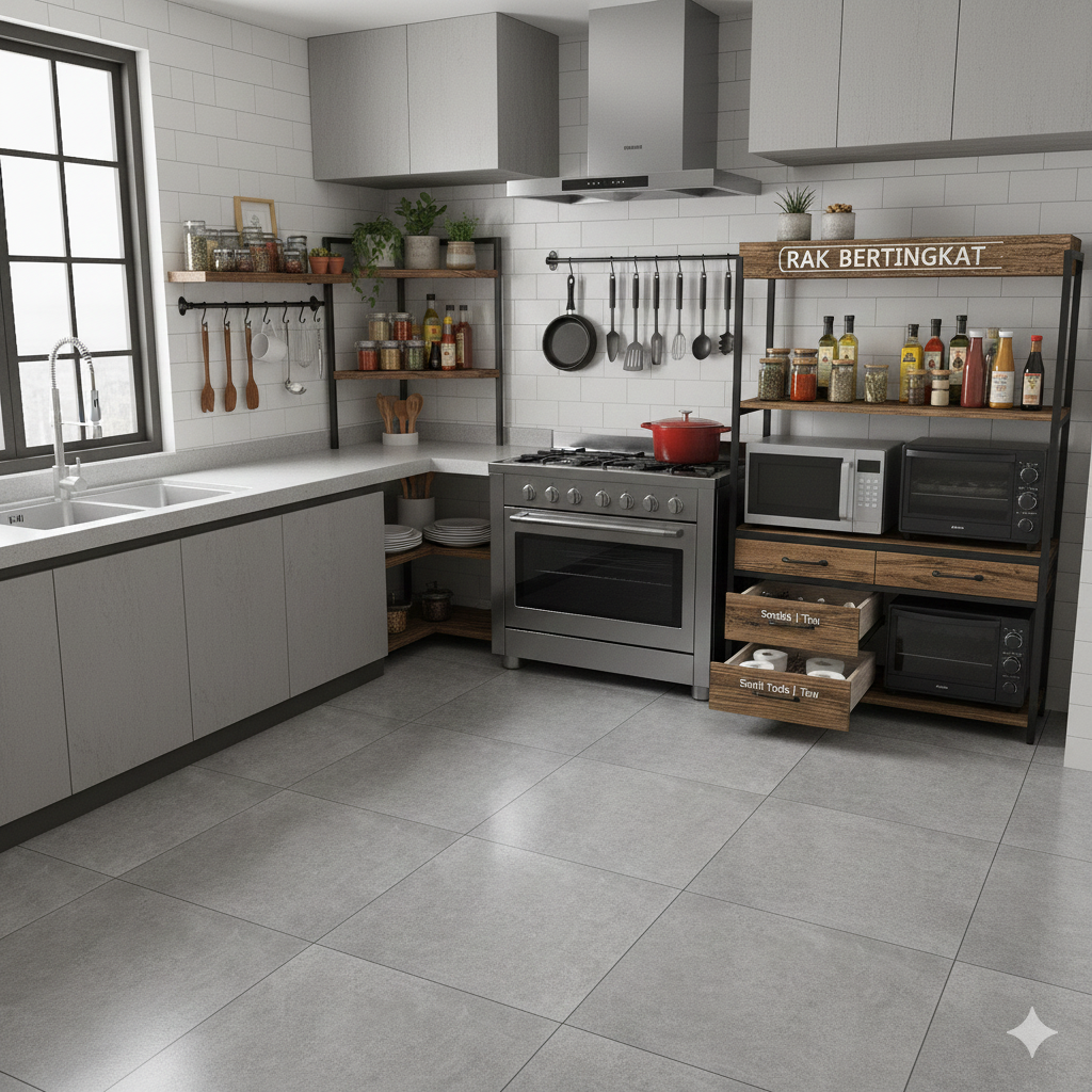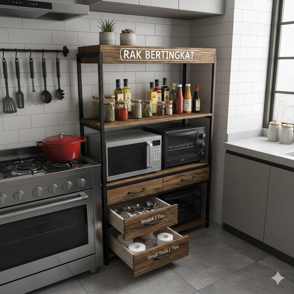 Rak multifungsi modern adalah perabot yang dirancang untuk memaksimalkan setiap inci ruang dapur. Bukan hanya sebagai penyimpanan, tapi juga penambah estetika, pengatur alur kerja, dan pendukung gaya hidup sehat dan teratur.