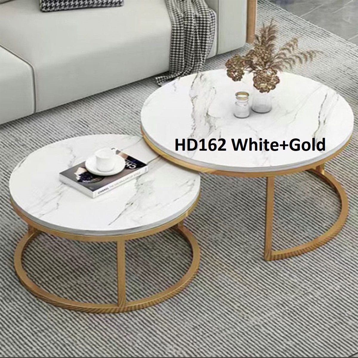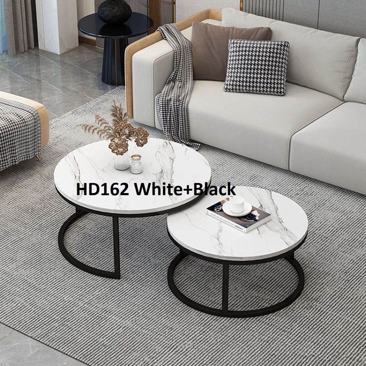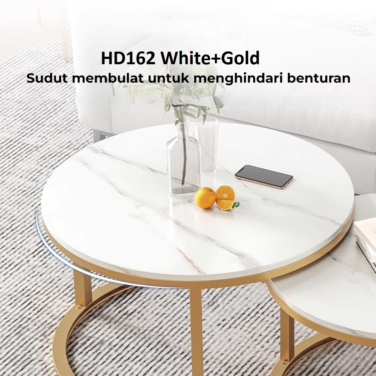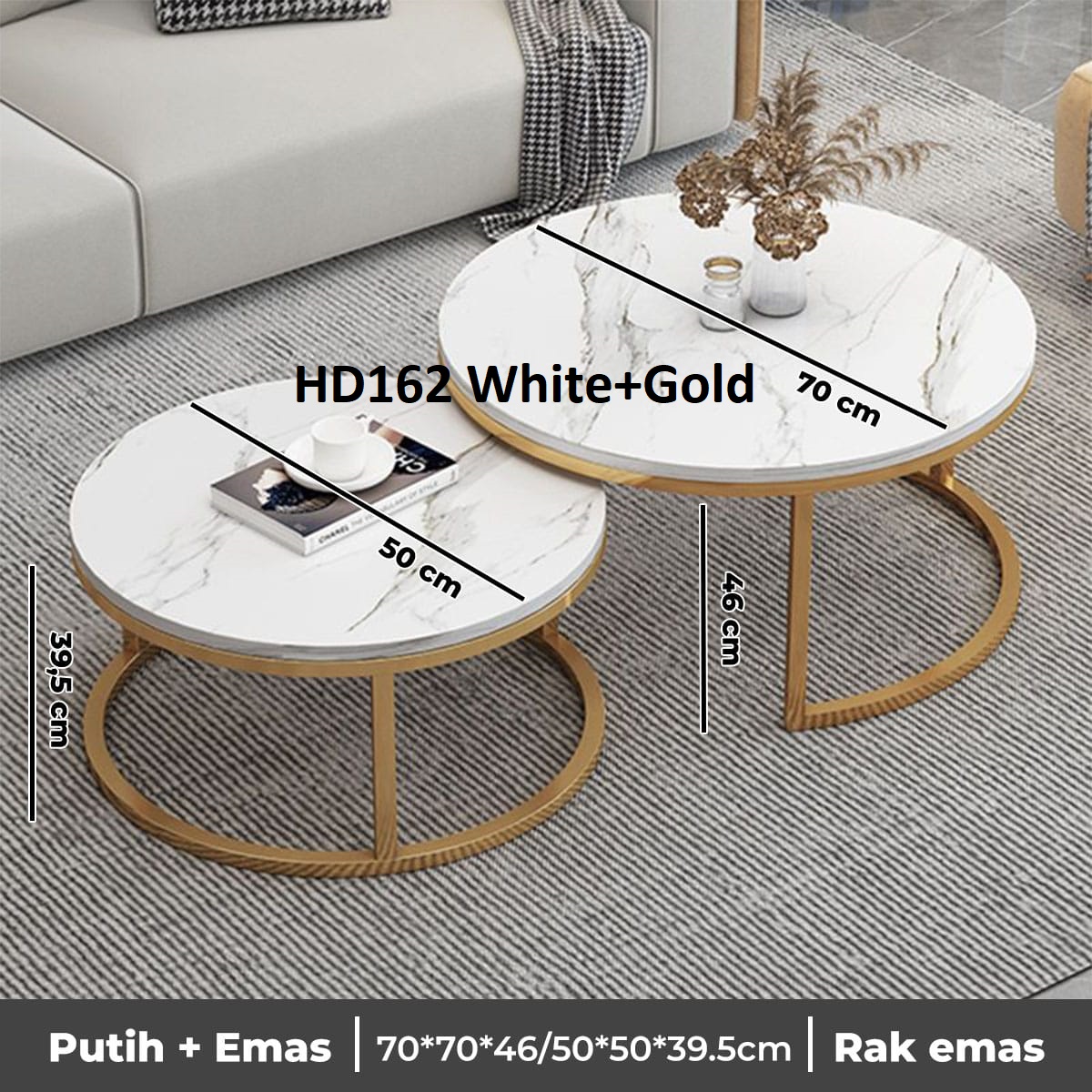 Set meja bundar HD162 terdiri dari dua ukuran yang dapat digunakan bersama sebagai satu set atau dipisah di dua lokasi berbeda, sangat fleksibel untuk ruang tamu, ruang keluarga, kamar tidur, ruang kerja, hingga area resepsionis kantor.