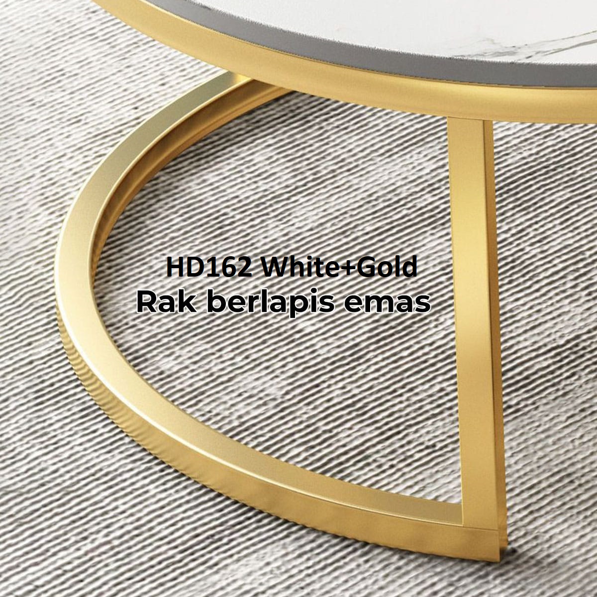 Dilengkapi kaki baja karbon berkualitas tinggi, meja ini memiliki penyangga yang stabil, tidak mudah berkarat, dan sangat tahan lama untuk penggunaan jangka panjang. Varian emasnya hadir dengan finishing berlapis emas yang memberikan tampilan lebih mengkilap, bertekstur, dan menambah kesan premium pada ruang tamu Anda.