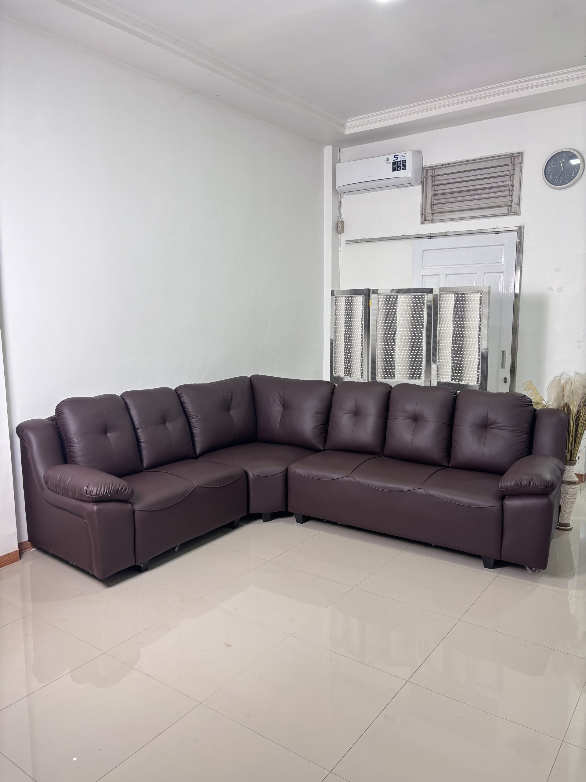 Sofa ini hadir dengan desain modern minimalis yang tetap mempertahankan sentuhan mewah melalui warna coklat eksklusifnya. Selain itu, bentuk L-nya menjadikan sofa ini ideal untuk ruangan besar maupun sedang, memberikan kesan proporsional sekaligus memperluas kapasitas duduk tanpa membuat ruangan tampak penuh.